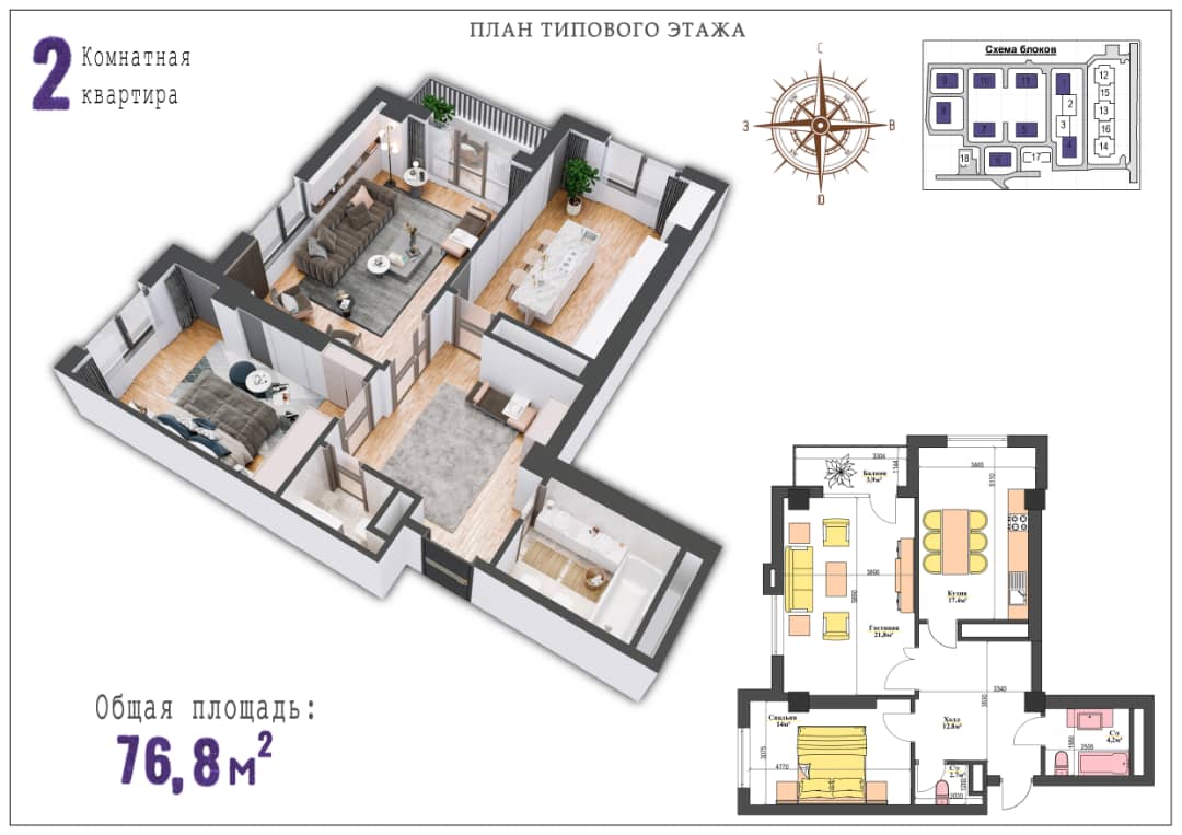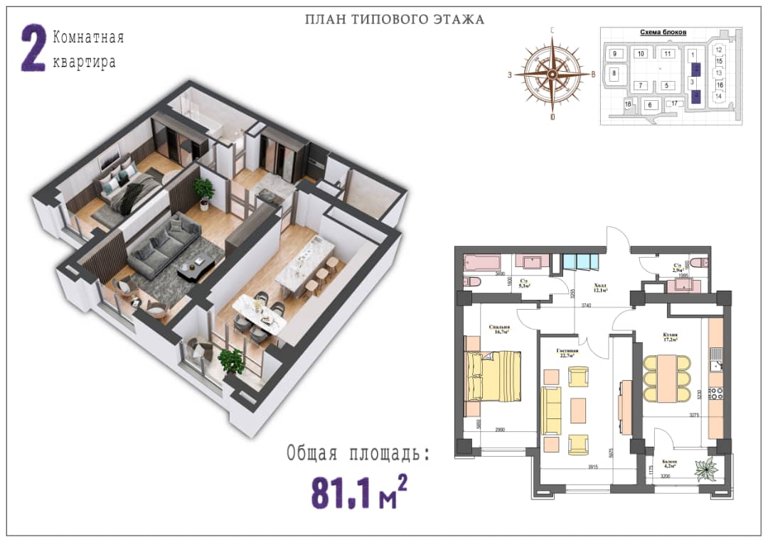 2-бөлмөлүү: 76 кв.м., 81 кв.м..